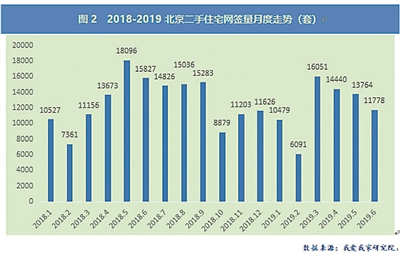 2018-2019北京二手住宅网签量月度走势 数据来源:我爱我家研究院